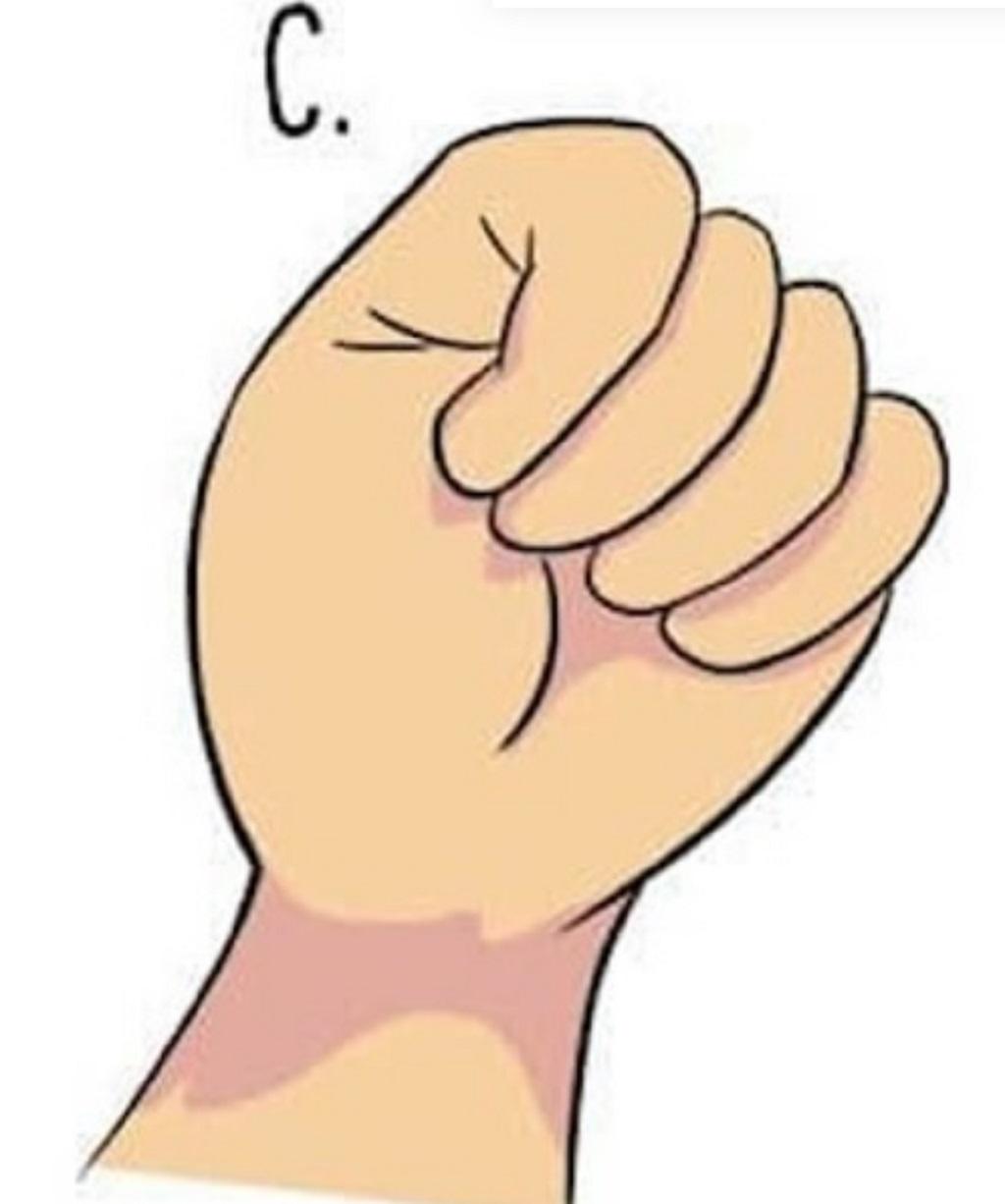 نوع شخصیت با بستن مشت که شستتان داخل همه انگشتان باشد (شماره C)