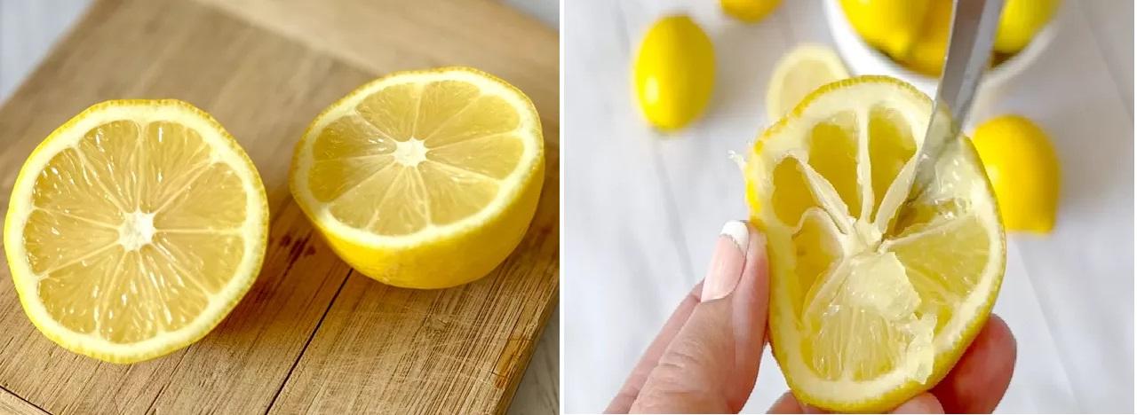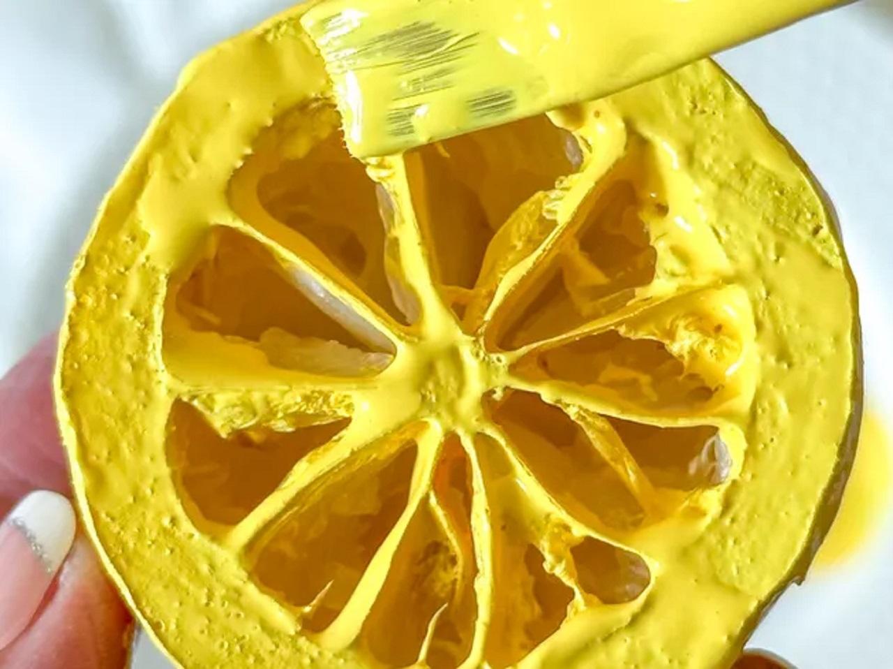 ابتدا یک لیمو بردارید و آن را از عرض برش دهید — ببینید چگونه بخشهای روشن و آبدار آن نمایان میشوند! حالا به آرامی آن را فشار دهید تا بیشتر آب آن خارج شود، اما مراقب باشید غشای ظریف آن پاره نشود، زیرا برای چاپ طرح واضح و شفاف به آن نیاز خواهید داشت. سپس با یک چاقوی تیز بیشتر بخشها را خارج کنید و تنها غشاها را باقی بگذارید.