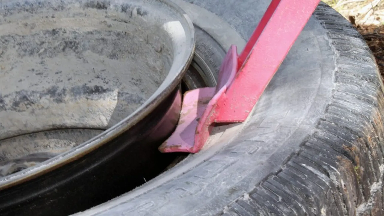 - یا اینکه لاستیک (تایر) را در دستگاه تعویض لاستیک (تایر) دستی قفل کنید و سپس با میله تعویض، رینگ را از لاستیک (تایر) جدا کنید.