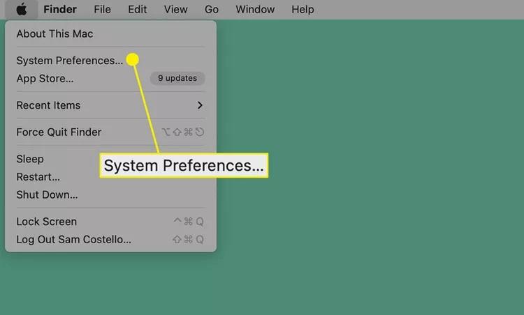 - روی منوی Apple در گوشه سمت چپ بالا کلیک کنید و System Preferences را انتخاب کنید.